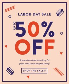 This ad you can tell is a labor day promotion due to the labor day message and the big “fifty percent off” in alternating colors. And the red is the right amount of contrast just so you can see it.
